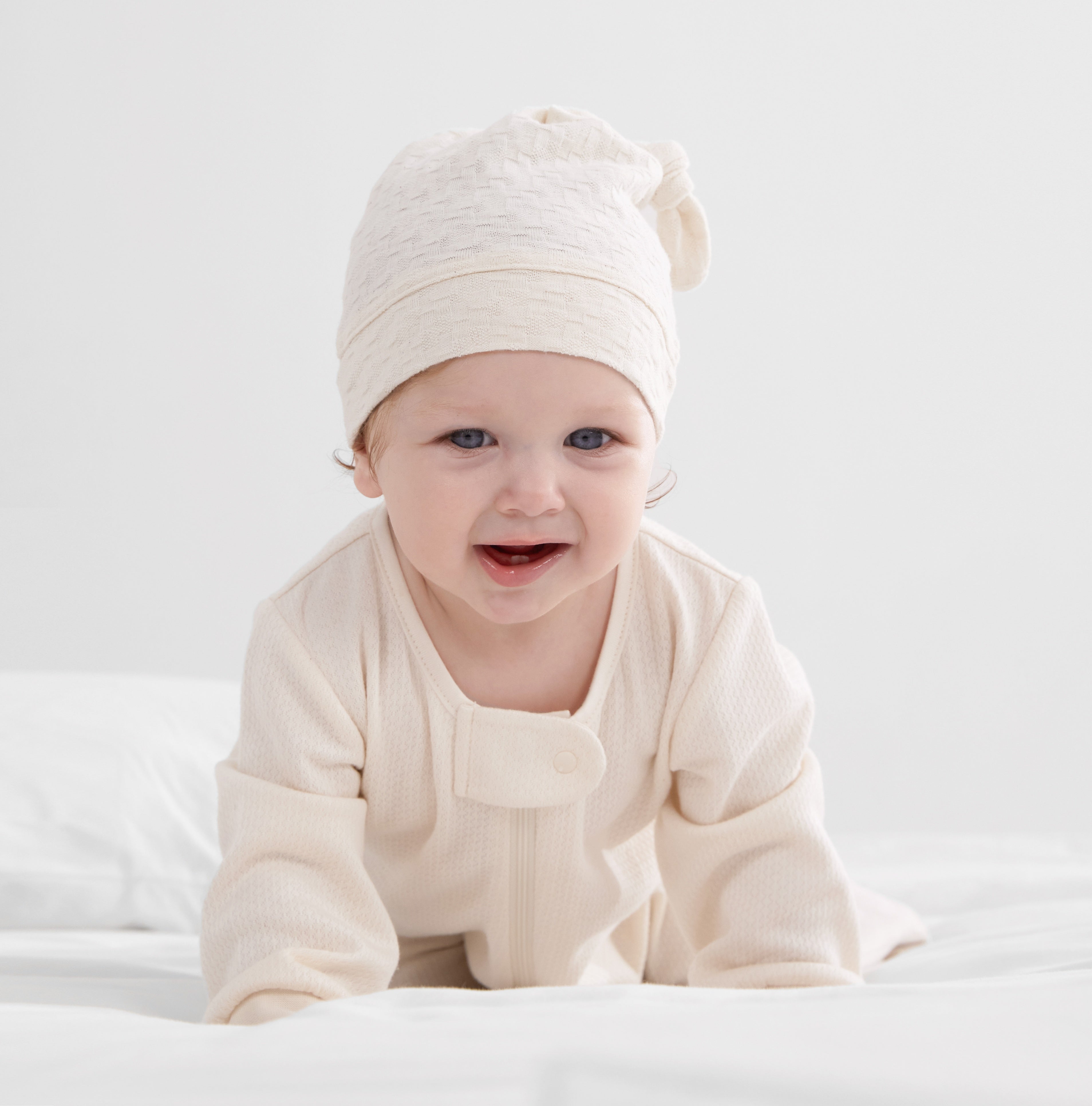 Complete your baby’s comfy layette with our incredibly soft top knot hats, designed to stay securely in place all day. These hats are not just adorable accessories; they mimic the warmth of the womb and help regulate your baby’s temperature. They pair perfectly with our gowns and pajamas.