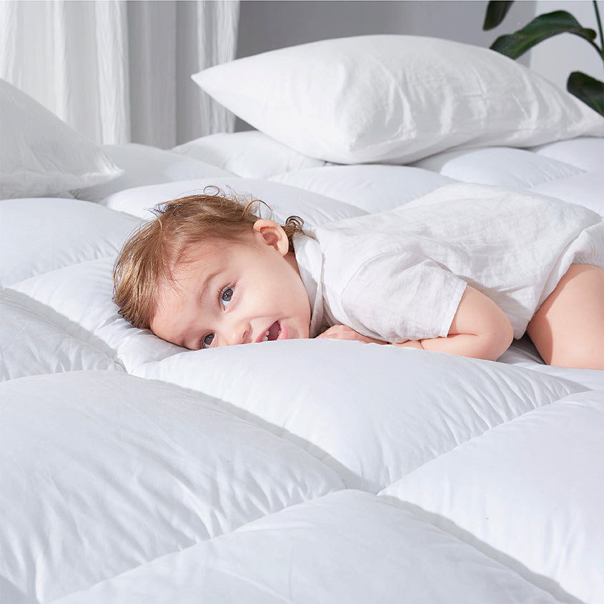 Sleep like a baby with KUB Mattress Topper. Designed to transform your bed into a soft, breathable haven, it feels like you're resting on a cloud. The 100% cotton surface offers a soothing, gentle touch, ensuring both you and your child enjoy the most comfortable night's sleep.