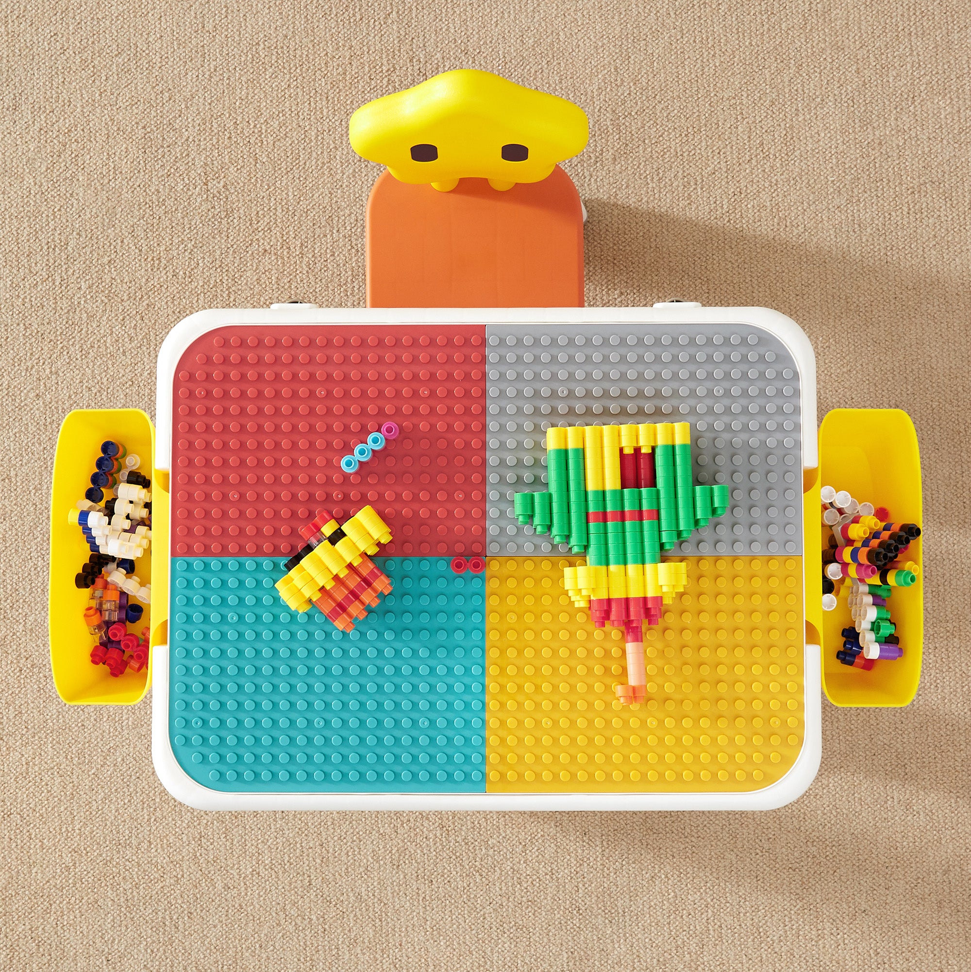 KUB's all-in-one activity table and chair set is perfect for any child's playtime needs. It easily converts into a block-building station, study desk, dining table, storage center, water table, or toddler sandbox, offering limitless fun and versatility for every activity.