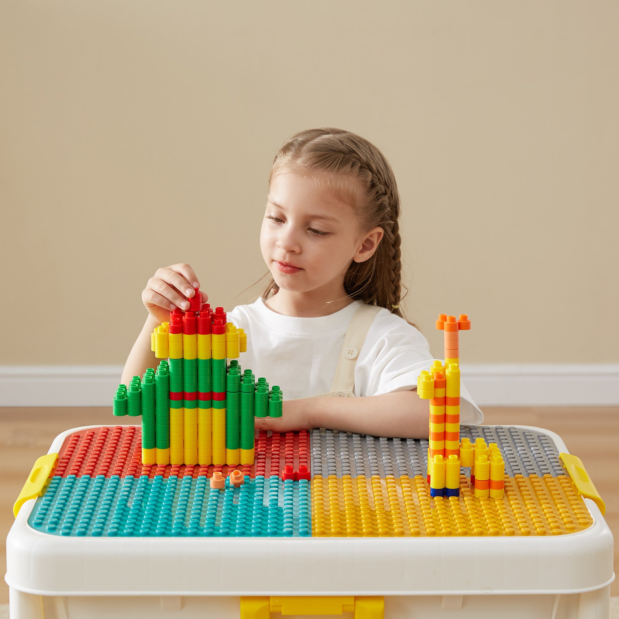 Our multifunctional table and chair set offers endless fun, making it the perfect solution for children's playtime. This set is ideal for fostering children's growth and development, featuring integrated storage for keeping all sorts of things. It provides more organizational space with extra trays, and the body of the table can even be used as a mini pool for water toys. Plus, it includes large blocks of pieces to prevent choking hazards, ensuring a safe and enjoyable play experience.